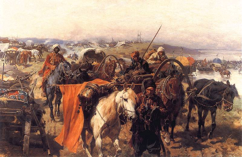 Після того як була зруйнована Запорозька Січ у 1775 році, одна частина козаків розійшлася південними землями України, а інша – від 5 до 10 тисяч – вийшла за межі Російської імперії. Залишити Січ було непросто. Зокрема, козаки доводили необхідність цього заробітками, зазначаючи генералу Петрові Текелію, який очолював процес зруйнування Січі: «Бач, Пане отамане, ма сорочки, ма штанів – одна гола сірома». Він відпускав їх, і вони переходили до Очаківської округи, до турецького султана, на той час тут проходив кордон між Османською та Російською імперіями. За легендою, складаючи присягу султанові, козаки, набравши рідної землі в чоботи, промовили: «На чий землі стоїмо, тому й служимо».